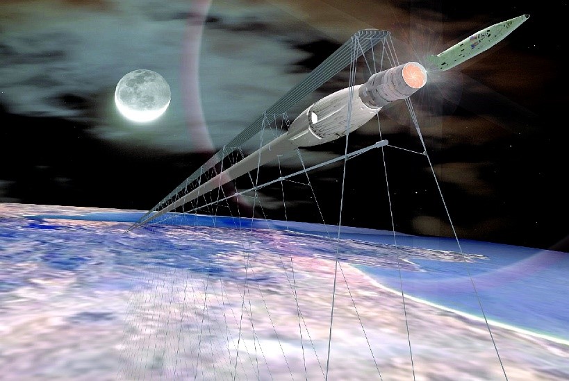 The principles behind StarTram involves 100’s of miles of connected tubes evacuated of air that would reach 14 miles into the atmosphere. A SkyTram space portal would be located at a mountain range a few miles above sea level (e.g. Mongolia) to negate some of the cost of connecting the tubes from sea level to 20 miles high. SkyTram’s tubes will be lined with permanent magnets while SkyTram’s superconducting maglev pods will be able to accelerate through the evacuated tubes (no air resistance) at well over Mach 20 to reach LEO.