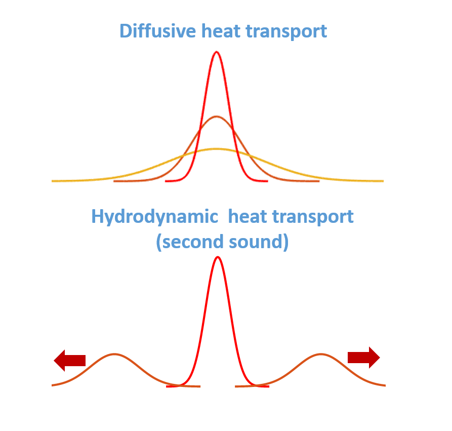 Wavelike thermal transport in solids, referred to as “Second Sound,” is an exotic phenomenon in which heat behaves more like a sound when moving through graphite at low temperatures like 120K. Points that were originally warm are left instantly cold as the heat moves across the material at close to the speed of sound. Such thermal waves display all the usual properties of wave phenomena, including resonance and reflection characteristics.